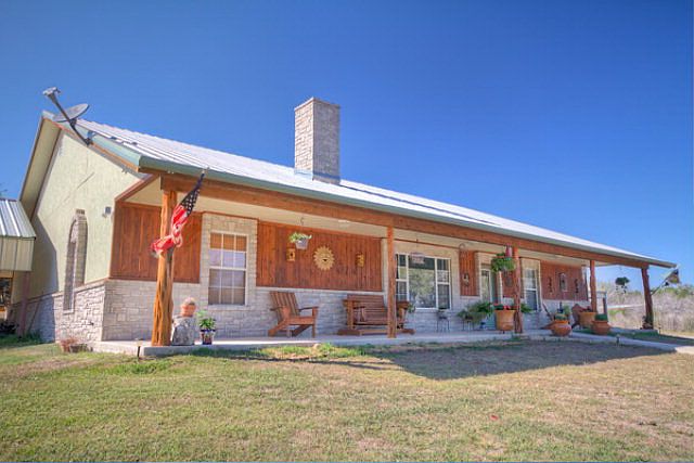 Peaceful & scenic country setting. Open floor plan, ranch style 4 bedroom home with a front covered porch. Large stone fireplace in living room, game room upstairs. Spacious kitchen has island work area, separate den/study, nice sized bedrooms, master bathroom has double sinks, tub, and a huge tiled shower. Utility room has good storage and is large enough to include a sewing/craft area. -------------------------------------------------------------------------------- ADDITIONAL REMARKS: Automatic gated entrance, wet weather pond, fabulous pool and cabana, covered back porch, fire pit, large metal barn on a slab has workshop with a/c, bathroom. Good place for horses or other livestock. No city taxes but close to town.