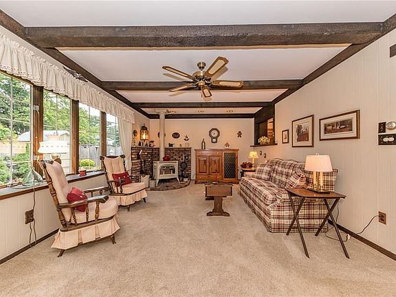 This charming home has a lot of characters that you will love. The wood beams on the ceiling & the wood accents throughout the house give this home a very country feel . On the 1st level you will find a cozy LR, a formal DR just off the EIK which features hardwood cabinets, attractive brick backslash, & a window looking into the spacious FR w/ a classic wood burning stove & large bay window overlooking the park like backyard complete w/ an over-sized detached deck. Make your way up to the 2nd level where you will find 3 large bedrooms w/ beautiful large windows & lots of closet space including the master suite w/ a room attached that could be used as a nursery or office & the main bath. The house also features a finished basement w/ a 1/2 bath, and original hard wood flooring under the carpet. This house sits on a beautifully landscaped yard and is waiting for you. Make this your new home today.
