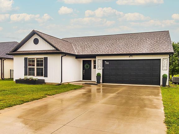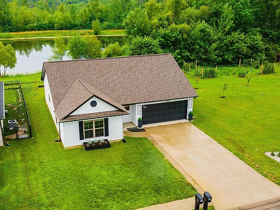 Modern farmhouse design meets elevated style and everyday harmony in this beautifully crafted 3-bedroom, 2 full bathroom home. The open concept layout seamlessly connects the kitchen, dining, and living space—perfect for entertaining or everyday living. The vaulted ceiling and striking lighting elevate the atmosphere, with sleek pendant lights over the island and a bold geometric fixture in the dining area that sets the tone for sophisticated, modern living. The kitchen features sleek finishes, a sizeable pantry, and a dedicated laundry room nearby. Both bathrooms are outfitted with smart tech mirrors, and one bathroom includes a luxury smart toilet for elevated comfort and convenience. Step outside to a tranquil backyard retreat with peaceful views of the lake and lush foliage. Enjoy homegrown peaches, apples, blackberries, and garden boxes filled with peppers, tomatoes, and green beans. The front garden features lavender—positioned just outside a flex room that’s perfect as a home office, bedroom or guest room. Open the window and let the soft scent of summer drift in. Complete with a 2-car attached garage and stylish curb appeal, this home blends modern design, natural beauty, and effortless living in perfect harmony.
