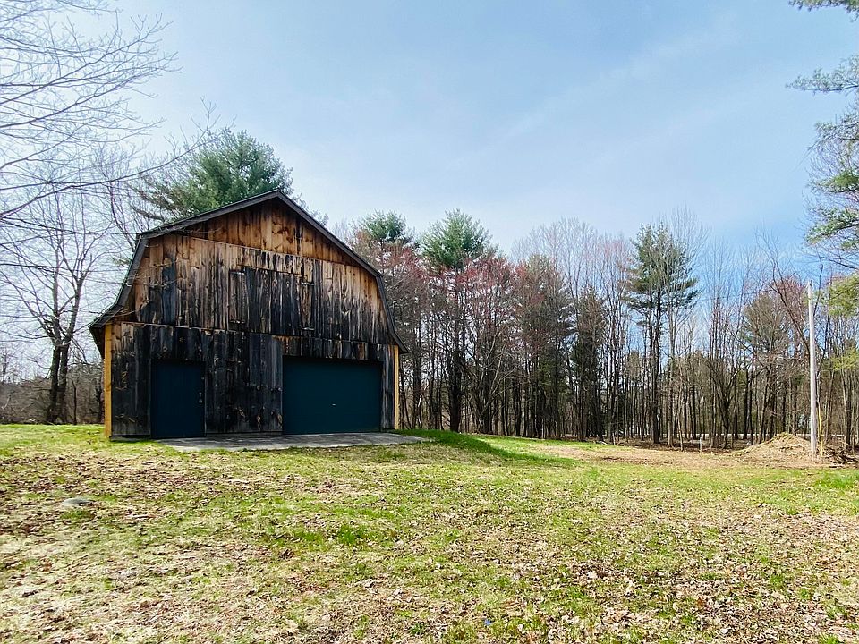 Beautiful level, wooded lot. 3 bedroom septic design, soil tested, driveway in place and electric on site to garage. The Gambrel style, 24x32, garage/barn was constructed in the 90's and has a second floor for storage or space to finish.