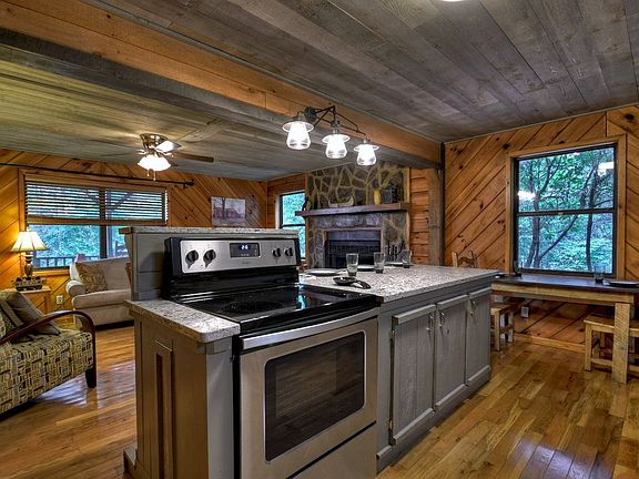 Spectacular year round mountain views w/ end of the privacy!! Top ten setting from this completely updated gem. Gorgeous wood floors & rough sawn ceilings throughout the main level. Large kitchen w/ breakfast bar, stainless appliances & granite countertops. Inviting great room w/ a real wood burning rock fireplace. Spacious main level bedroom & modern bathroom featuring a glass vessel sink, granite countertop & tile flooring. 2nd level features 2 more large bedrooms, a private balcony overlooking the layers of mountains, & updated bathroom w/ tile surround, granite & modern fixtures. Rocking chair, covered porch perfect for taking in the vistas! Large workshop/storage off of the screened porch. So close to Historic Downtown Blue Ridge, hiking trails & Lake Blue Ridge!