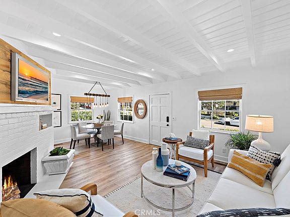 Here you will find a charming beach cottage with the look and feel of yesteryear on a large spacious corner lot! The house is bright from abundant wood casement windows and wood/glass doors throughout. Once though the welcoming bright colored entry door, the living area is open, anchored by a brick fireplace. The kitchen and two baths have all been updated. The primary bedroom, located at the rear of the home, has French doors that open to a newer deck with grass and a stone fountain beyond. The yard wraps around the house with greenery in every corner. With its prime location, this beach cottage is just minutes away from fine dining, local shopping, art galleries, and picturesque beaches. You don't want to let this one get away.
