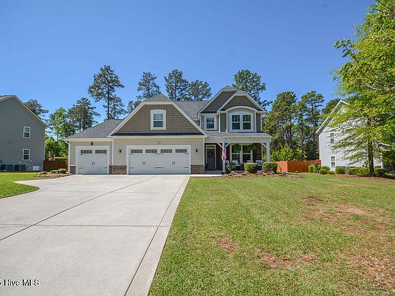 Close to Pinehurst, this Stunning Home has it All... 5 Bedrooms, Open Floor Plan, Fenced Back Yard with Hardscape Patio/ Wood Burning Fire Pit. Engineered wood on floors, New Appliances, Kitchen Island, Granite, Coffee Bar, Charming entrance with custom shelving/Ship Lap. Three Car Garage, one used as Work out room. Covered front and back porches and storage Galore. Four Propane Tanks, House wired for a whole house Generator (No Generator on site) Seller used a portable generator that does not convey.