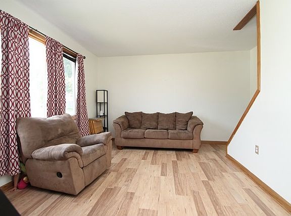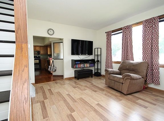 Quaint one half story, three bedrooms, two bathrooms with a two stall garage! This home offers a large eat-in kitchen, with hardwood floor, lots of cabinets and ample counter space. Conveniently located main floor laundry that walks nicely into the two stall garage. In addition there is a large main floor bedroom with a full bath. The living room provides lots of natural light and brand-new laminate hardwood floors. As you had upstairs you have two additional bedrooms and a full bath. Awesome corner lot with a large yard. This home is a Must See!