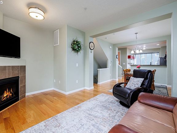 Contemporary Townhome-Style Condo in Sought-after Timberland Community Stylish 2-bedroom, 2.5-bath residence featuring engineered hardwood floors on the main level, cozy gas fireplace. Stainless steel appliances, built-in microwave, gas stove and designer built-ins with high-gloss red and white lacquer finishes in the kitchen. Includes an oversized tandem 2-car garage with driveway parking. Central air. HOA covers water/sewer and maintenance. Newer water tank (2022), Fridge (2021), washer (2022). All appliances included.Prime location near shopping , dining, Sunset Transit Center (MAX), with convenient access to Nike, Columbia Sportswear, and NW Portland.