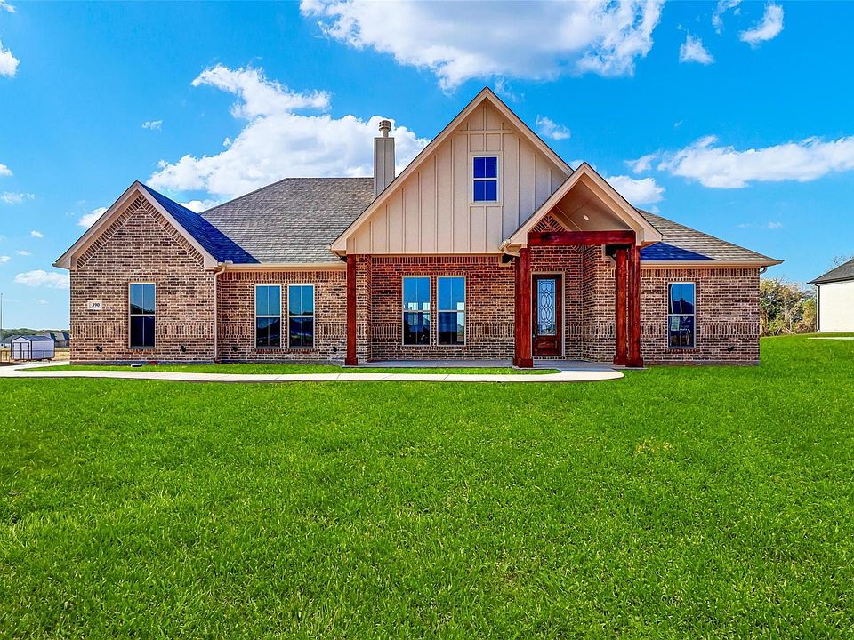 New Custom Home located in Windmill Ridge Estates in Paradise! This is the high-end custom spec home with this 2243 sq ft open floor plan with 3 bedrooms, 2.5 bathrooms, an office or bonus room and 2 car garage. Traditional style with brick, wood burning fireplace with 2 custom built bookcases in the living area. Large walk-in pantry, kitchen island, stainless steel appliances, plus custom stained cabinets, custom trim work including trim work around mirrors, ceramic tile, and granite throughout! Beautiful primary bathroom with garden tub and separate tile shower. HUGE primary closet with an island dresser leading into the laundry room. Spacious back porch with lots of room for entertaining! Nextlink fiber optic available. Located off HWY 114, 30 minutes from FW Alliance. Paradise ISD with A+ rating!