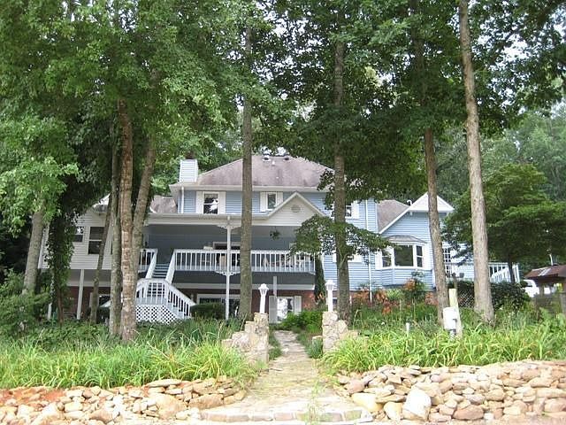 Gorgeous Victorian Style Lake house with 274 feet of gentle slope lake frontage. Huge recreation room with bar, 4 bedrooms with the master on the main, custom Corian counter tops and cabinets. 4 full size baths and 1 ½ bath. Built in breakfast room. 2 car attached garage and 4 car two story garage with finished room above. Nicely landscape Koi pond with waterfall. Dock floats all year round.