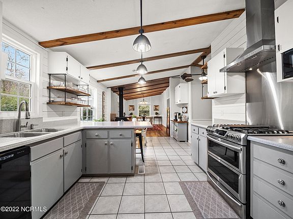 For sale is a unique opportunity with multiple homes on a large 3.33 acre property near the heart of Hampstead. Four individual parcels make up the 3.33 acres. The first parcel address is 390 Peanut Road Road and consists of a manufactured home constructed in 1985, an addition was then built over that home in 1995 extending the square footage on the front side of the home. This 3 bedroom, 2 bathroom home was then renovated in 2020 to give the kitchen with vaulted ceilings a fresh new look including shiplap and sheetrock walls, Corian countertops a gas range and stainless appliances. Faux wood beams accent the ceiling in the main living areas, all three bedrooms are oversized for plenty of room to live and work from home.