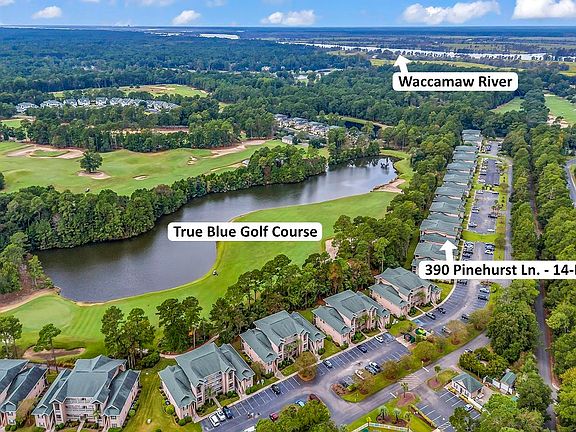 Well, Maintained ~ Move-In – Rental Ready! Selling Furnished! Located in the coveted, award-winning True-Blue Golf Resort in Pawleys Island, this 3 Bedroom, 2 Full Bath Condo Unit provides many desirable updates with a flowing open floor plan that adds privacy with a split bedroom design. Situated on the 17th Fairway, the location also provides easy access to one of the four pools in the community and close proximity to the tennis courts, as well. The elegant wood-look of the LVP flooring enhances the main living space that includes a sizeable dining area that is open the spacious kitchen enriched with recent updates that include quartz countertops, tile backsplash, an array of custom soft-close cabinetry, breakfast bar and pantry. The 11’x16’ Primary Suite offers a sizable walk-in closet along with a sliding glass door that leads to the screened porch which can also be accessed through the main living area. The en-suite bath has been tastefully renovated to include stunning tile flooring and vanity with a quartz countertop. The 2 privately located Guest Bedrooms share a full bath with a tub/shower combination and display the same updates as the primary bath. Attractive teak wood interlocking tiles have been added to the balcony providing a lovely finished look to this sanctuary that offers the perfect place to enjoy that first cup of coffee in the morning or a favorite beverage at the end of the day. Additionally, there is a full-size washer and dryer along with an ample sized storage closet located by the entrance that provides welcome space for golf clubs & beach items. The True Blue Community boasts of a premier golf course, the renowned Steve Dresser Golf Academy, restaurant and pro-shop in the clubhouse. HOA fees include exterior building insurance, water/sewer, cable/internet, pool service, security, landscape/lawn, pest control and more. Perfectly located in the center of Pawleys Island, the community offers close proximity to the sparkling Atlantic Ocean, the Intracoastal Waterway and an abundance of incredible restaurants and unique shops. Residents are able to enjoy the community pools, hot tubs and tennis courts, as well as reduced rates at True Blue and Caledonia Golf Courses. As another added bonus, the True Blue Community allows for both short term and long-term rentals!