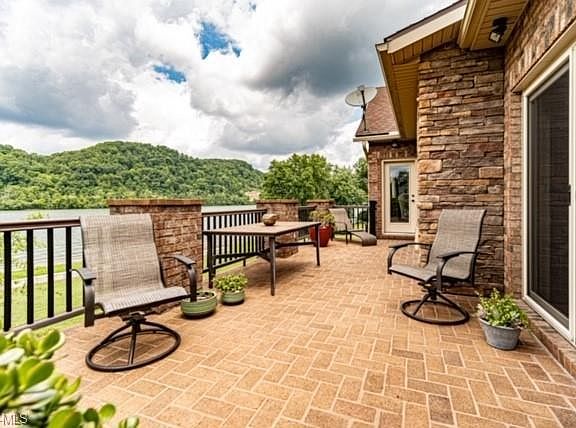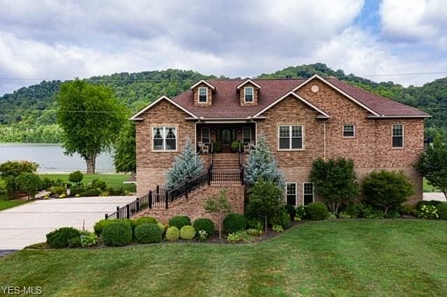 Spectacular River Front Property! This beautiful all brick one-owner home was constructed in 2011 but looks as if they just drove the last nail. Open concept 3 bedrooms, 2 full/2 half bath home has been so lovingly cared for you simply need to unpack. Beautiful Brazilian hardwoods are throughout the home and they accent the white trim and crown molding & doors perfectly. A gorgeous kitchen with granite countertops & stainless appliances, a large island overlooking the vaulted family & dining areas. The owners' suite is large with a 12x12 walk-in closet that leads right into the 12x9 laundry area. The second and third bedrooms are of generous proportion and share the second full bath. There is a nicely appointed office space with added storage available for the working from home environment. This property offers a rear patio and porch with spectacular views of the Wayne National Forest and the peaceful Ohio River. For those relaxing outings enjoy the 35x21 screened room with a fireplace and plenty of room to enjoy the 350 feet of river frontage. The large garage can accommodate up to five cars and has radiant heated floors. You will have peace of mind with the whole house generator, elevator for safe transport from the ground to the first level, and a pole barn for added storage. Your choice of propane, gas, or electricity available. Do not let this one-owner, absolutely gorgeous property slip away without admiring it.