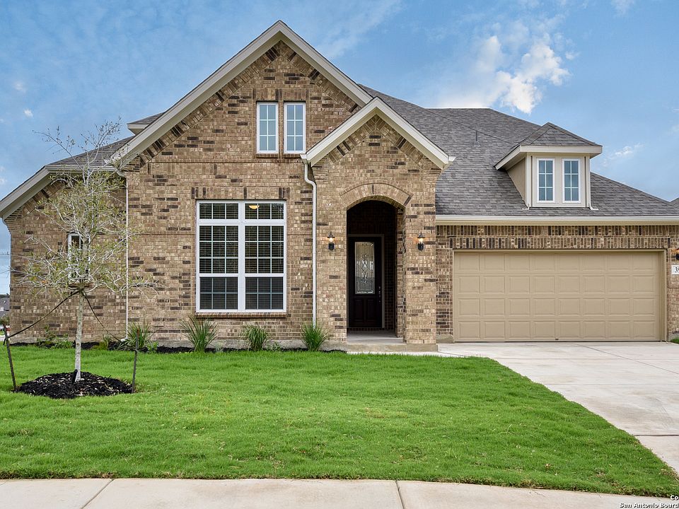 Beautiful 1.5 story with a gourmet kitchen featuring upgraded cabinets, built-in double ovens, gas cooktop, walk-in pantry, and a center island open to the family room. Formal dining room. Luxurious master suite with a private bath including a garden tub, oversized shower, double vanities and a walk-in closet. Two secondary bedrooms downstairs. Spacious game room, bedroom and bath upstairs. Extended covered patio on back of home perfect for outdoor relaxation.