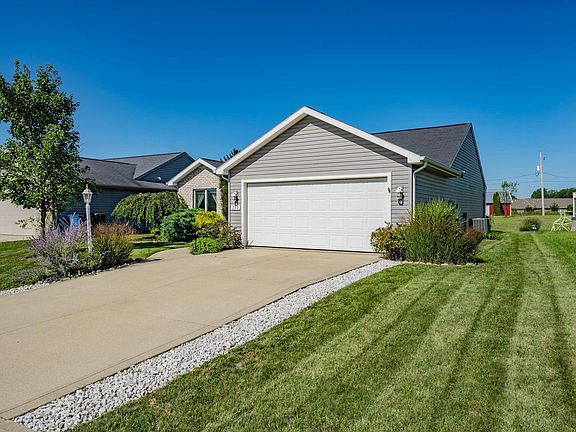 Classic & cozy move-in ready ranch with open floor plan, vaulted main living room & much to love! Located in a peaceful area of the Hamilton Meadows subdivision just north of Illinois Rd, you don’t have to worry about cars whizzing by as there is only one entrance to this neighborhood. Built in 2011, this one owner 3 bedroom, 2 full bath home has been well maintained from outside in. Attractive & inviting exterior looks charming with select landscaping elements & rock lined driveway leading to attached 2 car garage. Inside the front door you’ll find a warm & welcoming atmosphere complemented by a soft neutral color palette—the perfect backdrop to your own personal style! Laminate foyer links to carpeted main living space which feels big, bright & airy with an impressive cathedral ceiling & fan to keep air flowing. The room gets plenty of natural light from large windows to back yard & sliding glass doors to back patio. Living is open to adjacent kitchen/dining separated by a half wall adding to a communal feeling allowing everyone to be together. Enjoy meals with a view of almost countryside, home does not back up to any other houses offering a touch more privacy. Formal dining nook is divided from kitchen by wrap around breakfast bar great for quick bites. Kitchen has everything you need with abundant cabinetry, tile backsplash & pantry; laundry with built-in shelving off kitchen. (Both kitchen & dining are also on laminate that matches foyer.) Semi split bedroom floor plan has generous primary bedroom off living with walk-in closet & en suite bath with tiled tub/shower. Remaining 2 bedrooms are both comfortably sized & in hallway with shared full bath, also with a tub/shower combo. Enjoy the tail end of summer from your back yard patio with room to kick back, relax & take in the scenery. Built in fire pit is ready for roasting marshmallows & those brisk autumn nights! Walkable community is perfect for strolling with sidewalks on both sides of the street as well as small trails winding around the many ponds. Just down the road from Chestnut Plaza Dr with Kroger, several drug stores, various eateries & other stores making errands a breeze! Minutes from I-69 & Jefferson Pointe with easy access to local amenities, shopping, dining & groceries. Are you ready to make this house a home & finish the year out in your new spot? Don't let this one slip away—reach out today!