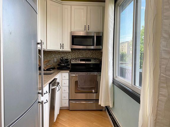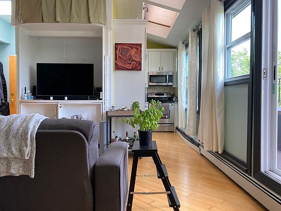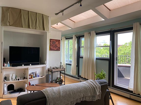 Spacious 2 bed, 1 Bath penthouse unit with two private balconies. With four skylights, this unit is flooded with natural light. Two queen sized bedrooms offer ample storage. Renovated kitchen includes stainless steel appliances, granite countertops, and tile backsplash. Large living space opens to your private balcony with a second balcony off the guest bedroom. Hardwood floors throughout. Heat and hot water included. Shared card-op laundry in the building. Great location just minutes to Brookline Village, Longwood Medical area, Fenway and public transportation. Available July 1st!