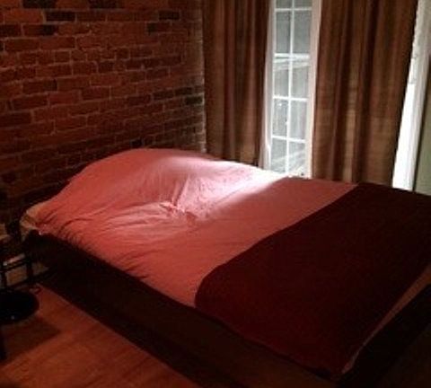 Perfect if you are looking for 1 bed with an office. Living area with exposed brick and classic wood burning stove (non functioning). Large bedroom with nice porch/covered deck and large closet. Separate kitchen, clean, practical and has everything! Lots of cabinets and counter space! Another large closet in foyer. Can't beat location. Laundry in building. 12 month lease. Tenants are responsible for the cost of all separately metered utilities. Rent include heat and hot water.