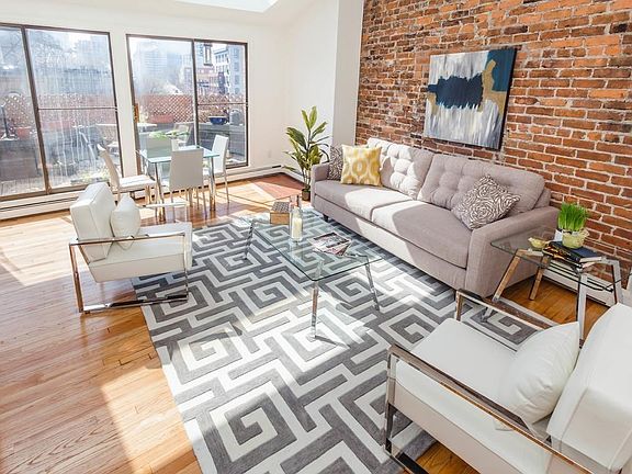 Incredible south-east facing two bed/one bath Penthouse. Flooded with abundant natural light, the large living / dining room and your private deck provide great space for entertaining or a quiet evening at home. Enjoy incredible views of the city from the deck or expand up to the roof as you have Roof Rights! This penthouse includes an updated galley kitchen with stainless steel appliances and granite countertops as well as a bathroom with a separate tub and shower. Other features include skylights throughout, hardwood floors, laundry hook-up and Professional Management. Great location close to public transportation, the Emerald Necklace, Longwood Medical, The Fenway, and Brookline Village. Walk Score - 74, Transit Score - 85 and Biking Score of 95.