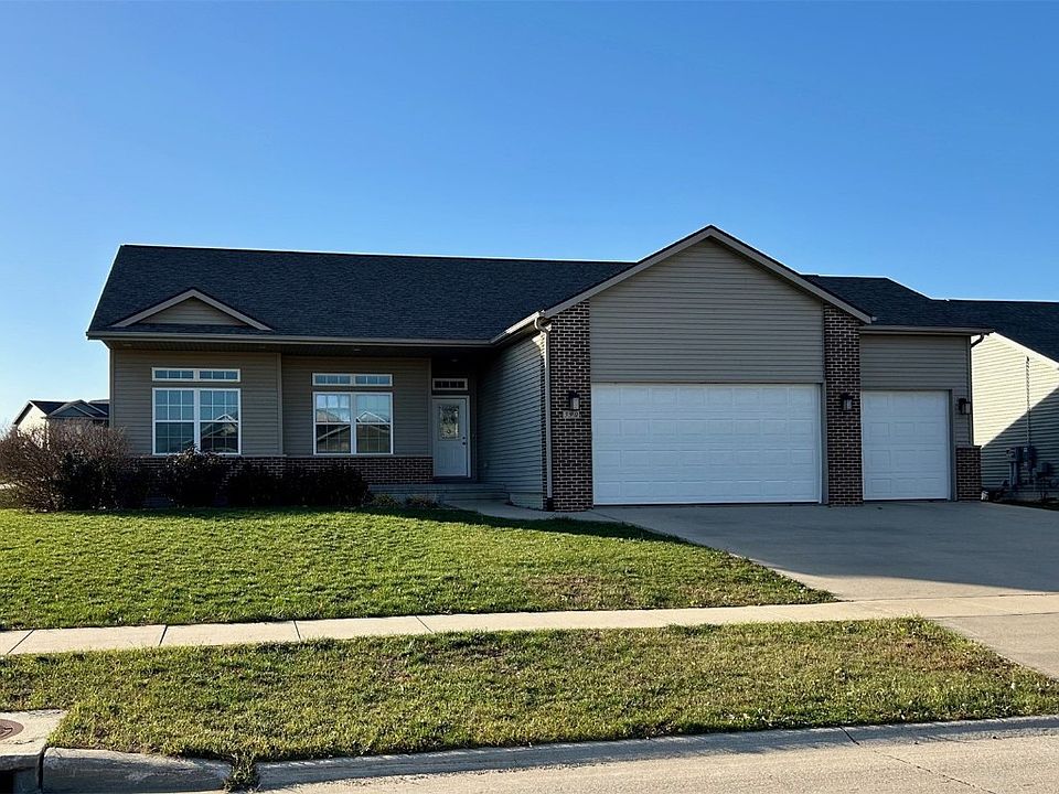 3 bedroom, 2 bath Ranch with 3 stall garage. Cherry stained maple cabinets with granite counter tops in the kitchen. Cherry stained maple millwork with transom windows throughout the home. Tile floors in kitchen, foyer, laundry and bathrooms. 12 x 14 screened in deck. Fireplace with full wall tile and mantle. Whirlpool tub in master bathroom. 10 foot ceilings. Member of Seller is a Licensed Realtor in the State of Iowa. $ 10,000.00 credit for flooring, paint and glass block window.