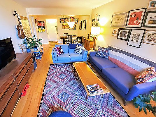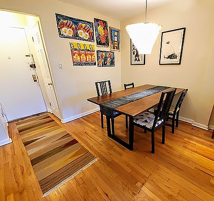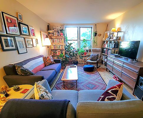 Spacious one bedroom in Ditmas Park! Expansive open living and dining room with more than enough space for a generous living room set up and a full sized dining table. Recently updated kitchen with modern fixtures and a dishwasher. Oversized bedroom that can fit a queen bed plus an extra sitting area or office, or both. Ample closet space in the bedroom and living area. Hardwood floors throughout. East facing windows get great light and look out on lush trees, rooftops, and a sky that stretches for miles. Well run, friendly building. Elevator. Lobby and hallways were updated earlier this year. Excellent live in super. Clean and open laundry room on the ground floor. Free bike storage available. Parking garage in the building, but not included with the apartment. Courteous and quiet neighbors. Can't ask for a better location. Steps from Cortelyou Road shops and restaurants with many great food options. Less than 100 feet from the Flatbush Coop organic grocery store and a Sunday farmer's market. Under 500 feet to the Q subway stop. There's even a library branch across the street! Heat and hot water included in the monthly maintenance. AC units come with the apartment. Walls will be painted before move in. Coop building with a no dogs policy.