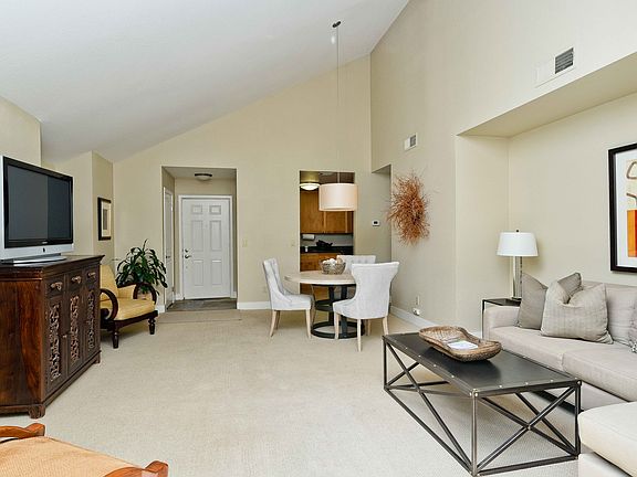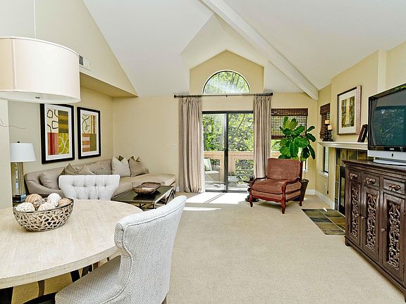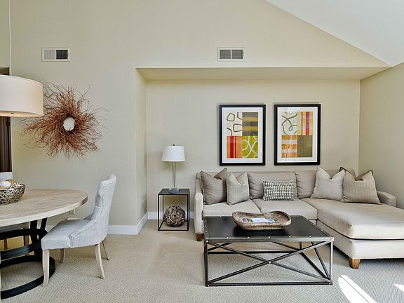 Resort like living with fabulous amenities! Enclosed 1 car garage! Enjoy the beautiful natural setting of this gorgeous Copper Ridge Condominium. Nestled amongst the trees this upper level condominium will make you feel right at home. Upstairs end unit with neutral décor, soaring ceilings, beautiful detailing and updated carpet. The beautiful living area has volume ceilings, fireplace and opens to the lovely rear balcony. Formal dining area with elegant overhead chandelier. The inviting kitchen has granite counter tops and tile flooring. The private master bedroom suite has volume ceilings, ceiling fan and adjoining master bathroom. The secondary bedroom has convenient access to the hall bathroom. Laundry closet with stackable washer and Dryer. Elegant appointments and window coverings. Enjoy resort like living in this wooded neighborhood, with community pools, spa, tennis courts and only minutes' drive to shops, City Center Bishop Ranch and the Iron Horse Trail.