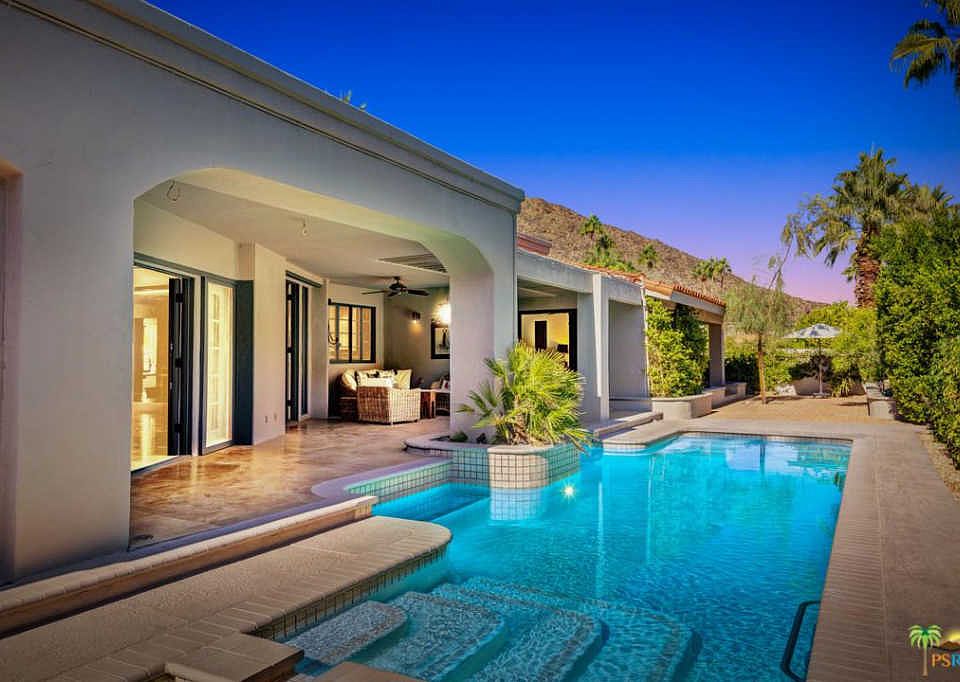 LOCATION, LOCATION, LOCATION! Stylish Tennis Club home in downtown Palm Springs has high ceilings, an open floor plan, designer finishes, panoramic views and a private backyard with lap pool and in-ground spa! This is the one to check out if you want to be within blocks of restaurants, retailers and multiple entertainment venues. Large kitchen opens to the great room that has views, gas fireplace, and private room ideal for cocktails or visiting guests. Separate family room that opens to the outside, too! Master Suite has high ceilings, fireplace, stone flooring, direct access to the pool and spa, walk-in closet, and a private bath with dual sinks, walk-in shower and separate tub. On the other side of the house is Junior Ensuite Two which also offers views, access to the backyard and a private bath. Junior Ensuite Three offers incredible views of Mt San Jacinto and a private bath. Additional powder bath, inside laundry room with sink and attached three car garage. No HOA fees.