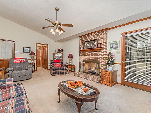5.09 percent Assumable VA with Roam! Upgraded roof (2022) and a brand-new heat pump (March 2025), this charming 3-bedroom, 2.5-bath home sits on Hole One of Sandy Ridge Country Club—offering stunning golf course views and a peaceful lifestyle. Nestled on a quiet cul-de-sac, the property combines privacy with convenience. Step inside to a spacious family room featuring a cozy gas-log fireplace—perfect for relaxing evenings. The kitchen is both functional and inviting, offering a walk-in pantry and an eat-in dining area. Enjoy the Carolina breeze from the screened porch overlooking the fairway. The primary suite boasts a large walk-in closet and private bath, while the second bedroom includes its own ensuite—ideal for guests or family. Additional highlights include a one-car attached garage and a detached one-car garage, perfect for projects, gatherings, or extra storage. Sandy Ridge Country Club offers more than just golf—residents also enjoy access to a clubhouse and pool, creating the perfect place to live, play, and unwind. Conveniently located just minutes from I-95, Hwy 13, and I-295, in the desirable Midway/Plainview school district, this home delivers comfort, location, and lifestyle. Don't miss your chance to live where you play—schedule your showing today!