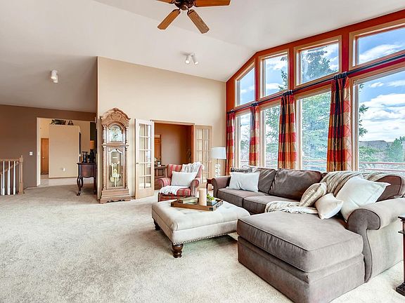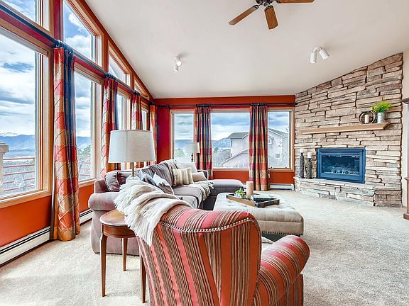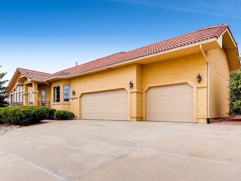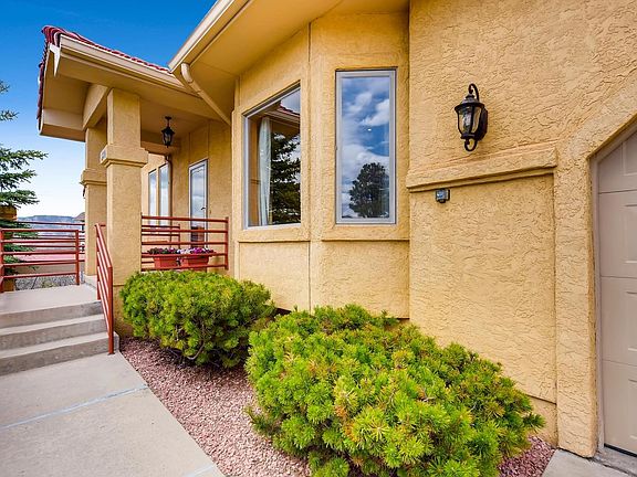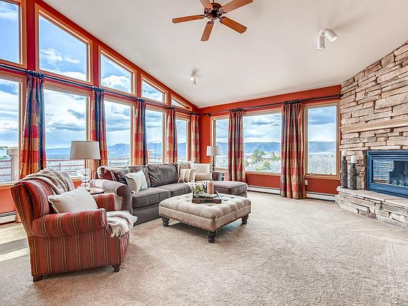 This private home in the desirable Woodmoor neighborhood has amazing views! Relax on the private patio in the morning and see the sun set across the front range in the evening! Gorgeous finishes with large kitchen, granite counters, stainless steel appliances with 5 burner gas stove, double ovens, cozy sitting room and space for large table as well! Kitchen walks out to a very private patio! Your family room has a stone fireplace, large mantle and amazing views of Pikes Peak! Large office by front door for easy access!
