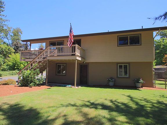 VACANT Covered wrap around deck grace this updated house located on a quiet cul-de-sac and really close to the Rogue River. 3 bdrm, 2 bath home with 1540 sq ft. on .15 acre lot. Kitchen has been totally remolded with refinished cabinets & counter tops. New floor coverings and interior paint completed the project. 2 bdrm 1 bath on upper level, master with master bathroom downstairs. Large living room with lots of natural lighting. Double car garage, fenced backyard. In ground sprinklers & RV parking. Walking distance to all sports park, Riverside Park & Fair Grounds