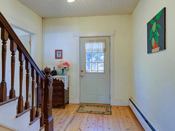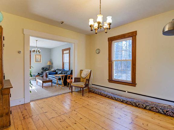 Spacious New England style farmhouse with 4 bedrooms and 2 full baths. Double living room formal dining room and south facing sunroom. New roof in 2008, new Buderus Boiler in 2007. Over 3,000 sq.ft. of finished living space plus large 24x36 attached barn. Beautiful pumpkin pine floors, large kitchen with island, plus a generous master suite with walk-in closet. Separate 1 car garage with electricity and a newer metal roof. Sunroom opens to a rear deck 16x20 overlooking the gently sloping backyard. All this on 14.82 acres with a private pond.COVID Precautions in place.