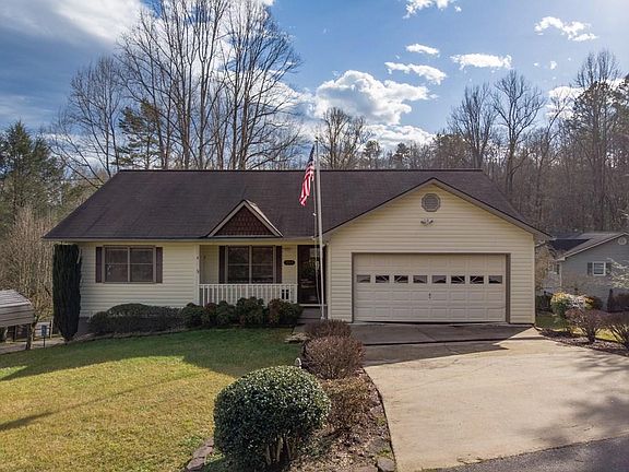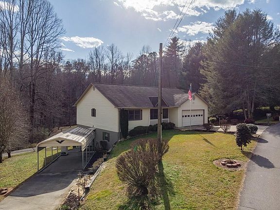Beautiful Ranch Home in the city limits of Franklin, NC - 3 Bedroom 2 Full Bath and half bath with a 2 Car Garage that has a handicap ramp that can be removed and a Carport. Full Basement partially finished. Main level living, vaulted ceilings in living room, natural gas log vented fireplace, beautiful laminate flooring, carpet and vinyl floors. Gas Instant hot water, Duel fuel newer stove and Stainless refrigerator. Open concept kitchen, dining and living room; kitchen has breakfast bar, laundry room in kitchen and access to garage, sliding glass doors for large open deck could easily be screened in. Master is en-suite, hall bath for the other two guest bedrooms. Part of the basement that is finished has carpet and is heated and air. Larger room to finish as you wish, has a toilet installed and utility sink and another work shop room with service to that leads to carport and back yard. Large area in back yard would be perfect for a garden or pets. Lots of storage in this home and room to grow! Morris high speed internet.