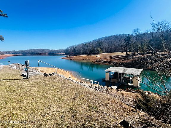 Beautiful Lakefront home in a small community in a deep water cove off the main channel near Norris Crest and across the channel from Deerfield. Located in same cove as Camp Galillee so you can swim off the dock yet 1 minute to main channel for the boating/fishing activities of your dreams. Drive thru garage to allow easy access for vehicles and storing lake toys during the off season. Storage shed in yard for extra toys. Lifetime docks double slip dock with two 24x10 foot slips and hydrohoist lifts for your convenience. Main level living with laundry, large pantry, drive thru garage, great room with plenty of windows to take in exceptional lake sunrise views, primary suite with full walk in closet, tiled walk in shower, and 2 separate vanities. Main level living special features include tongue and groove ceilings, recessed lighting, kicthen with massive island (eat in counter space), dining room table space that can support a table for 12+, stone floor to ceiling fireplace, vaulted ceilings, covered patio (trex), granite counters, stainless steel appliances and built in icemaker. Lower level has 12 foot ceilings, family room with room for all, another laundry area, 4 sleeping areas, 2 more full baths and storage. Expansive outdoor space/decks allow you to enjoy the lake with surround sound system inside and outdoors.. Home has 3 bedrooms and 2 additional bunkrooms. SHORT TERM RENTALS ARE ALLOWED IN THIS COMMUNITY. SELLERS WILL REVIEW OFFERS ON FEBRUARY 12TH SO MAKE EXPIRATION DATE 2-12-24 OR LATER. SELLERS RESERVE RIGHT TO ACCEPT AN OFFER PRIOR TO 2-12 BUT WANT TO LEAVE SHOWINGS OPEN FOR 2 WEEKENDS TO ALLOW BUYERS TO SEE HOME IN PERSON.