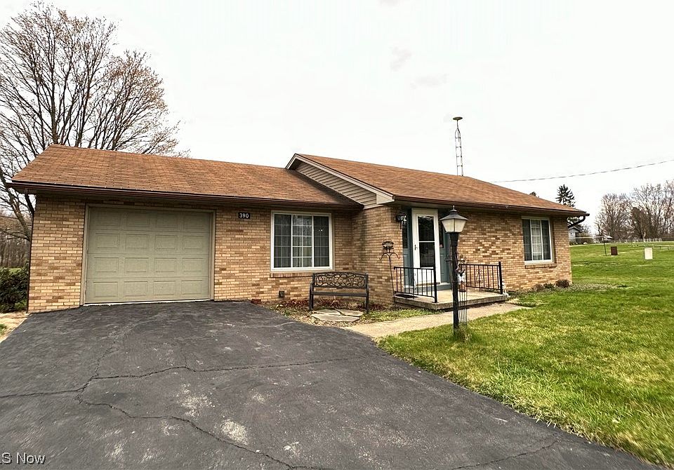 Start your next adventure with this beautiful 2 bed, 2.5 bath, brick ranch home with blacktop driveway, 1 car attached garage, vinyl double hung double pane windows, and a FIRST floor laundry. This home features first floor living at its best! Gorgeous ceramic floors in the foyer, beautiful hardwood flooring in the living room, hallway, and the dining area. The dining area has a large lighted built-in hutch for your display items. The master bedroom has a walk-in closet, a secondary closet, and a private full bathroom. Heading out your sliding glass doors off the dining area you will find your cement patio at the rear of the home with a wooded view; therefore, would be perfect for enjoying your morning coffee, your weekend BBQ's, or just unwinding after a long day. You will find another full bathroom in the partially finished basement, a separate room perfect for an exercise area or more storage, a separate room to keep your tools or other items, and a small kitchenette. All of this co