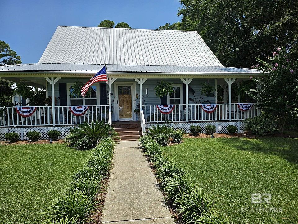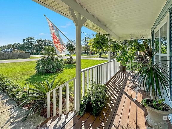 If you are looking for southern charm and outdoor living, this is the home for you! Perfectly situated on a large corner lot in one of the most desirable neighborhoods in Gulf Shores, just steps away from the city park, dog park, post office, Bodenhamer Recreation Center and city schools. Upon entering through the picturesque wrap around front porch, you will find a meticulously updated home throughout! This home offers an open floor plan with an abundance of natural light and large separate living room area boasting multiple windows overlooking the beautiful back yard. Kitchen has been beautifully updated with a gas stove, marble countertops, and shaker style cabinets with soft-close doors. Bathrooms have also been recently updated, including granite, custom tile showers and comfort height toilets. The home features a very well equipped MOTHER IN LAW QUARTERS complete with one bedroom, full bath with walk in shower, full kitchen, stack washer/dryer, and access to the beautiful back yard through french doors leading out to a private 10x18.5 deck and patio. Speaking of outside...your private fenced oasis is waiting for Summer days that never end! New 15x30 heated pool with water features is accented with a surrounding stone patio, two decks surrounded with beautiful zoysia sod and lots of additional landscape features with irrigation.Other features and updates include fortified roof, 3 HVAC replaced in 2021, natural gas Generac 24W whole home generator, tankless gas water heater, hurricane rated 24x22 "Tuff Built" storage building. 2023 ROYAL Golf Cart with only approximately 50 miles driven is also negotiable with the sale of the home. Buyer to verify all information during due diligence.