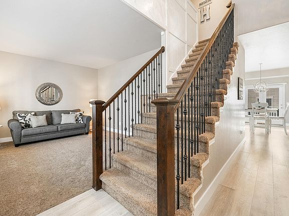 Great home in desirable neighborhood. Home offers plenty of space with 5 large bedrooms, open kitchen/family room plus formal living room or office. Basement is partially finished and features one bedroom and bathroom. Quality upgrades throughout with tile floors, granite countertops, plantation shutters, fireplace, stainless appliances and more! Fully fenced & landscaped backyard with deck. Low HOA dues! 2 parks, kids playground, basketball court, pickleball court, pavilion, picnic table and extensive walking trails. Buyer/Broker to verify all information.
