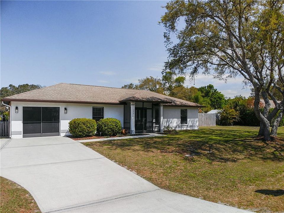 Come check out this adorable extremely well maintained 3 bedroom 2 bath home in South Venice. This home is being offered by the original owners. Located on a quiet sleepy street with wonderful homes surrounding it and friendly neighbors. Amazing corner lot on over 1/4 of an acre offers space to add a huge detached garage or park your RV's, and Boats on it. Fully fenced in for your privacy and perfect for your furry friends. There is really nice space on the enclosed patio to entertain your guest. High vaulted ceilings makes this open floor plan feel spacious and bright. This home is not your average older home built in the 60's that you often see in South Venice. This home was built in 1989 and shows pride of ownership. Roof is only ten years old and was replaced in April of 2011. The air handler was replaced in June of 2013 and is 7.5 years old. New Hurricane garage door just replaced in 2019. Clear Hurricane shutters remain with the home. Which allows plenty of light in when in use. This home was constructed with concrete block plus added steel reinforcement Located just 3.2 miles to the beach! Restaurants and shopping very close by. Seriously, you can't even get a decent 3 bedroom condo for much less than this home is price yet still have space for all your things without paying high HOA fee's. Septic and Well inspections were done two days before listing it as pre inspections which came out very good. Reports in the attachments for your use and piece of mind. Call us now to view this cute home. You won't be disappointed.