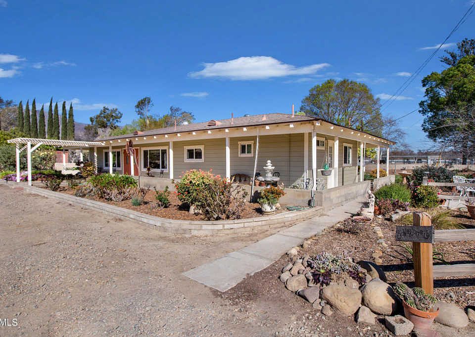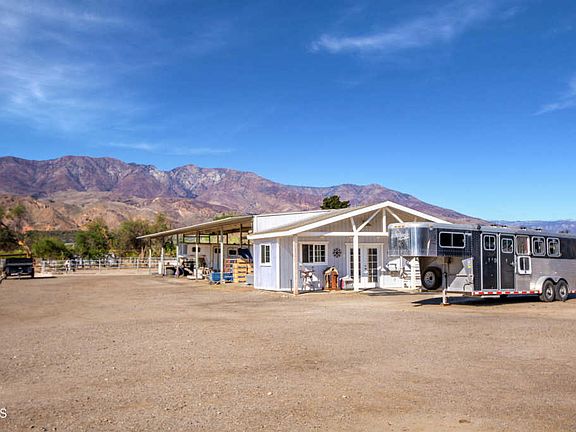 This 5.8 acre Santa Paula horse farm is ideal for the serious or casual equestrian. The 2br/1bth residence has been tastefully maintained and upgraded, with fun western accents and decor. A large backyard patio and expansive lawn area look out to the fenced horse pastures, shaded with giant elms and views of the majestic the Los Padres Mountains. The entire property is usable and smartly organized, with numerous features and upgrades. The oversize roping arena at the back of the property measures 290'x150'. The steel open-air horse barn is 180'x36', and hay & tractor barn is 36'x90'. An enclosed tack room is 10'x28'. There is ample room for multiple trailers and other large vehicles. The original enclosed four-stall barn can be used for farm animals or additional storage. A PRIVATE WELL pumps approx 30+/- gallons per minute; the historically high water table may allow for irrigated pastures or a nice orchard. No HOA !
