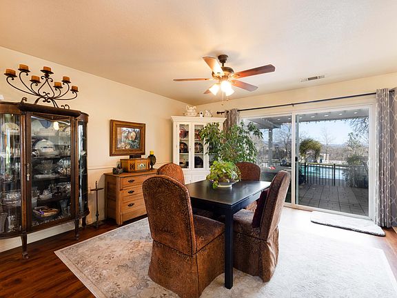 Beautiful 3 bedroom, 2 bath move in ready home perfeclty situated on almost 3/4 of an acre!~ Step into a bright and open floor plan with large windows to enjoy your backyard oasis. Featuring a stunning backyard with a lovely pool, a large pond and plenty of space to relax and enjoy the mountain views! Backyard adjoins a greenspace giving you a privacy feel surrounded by trees, fruit trees and space to garden. With a tile roof, RV parking, storage shed, fenced patio and covered pergola. This home boasts in pride of ownership from the inside out! A perfect oasis with the advantage of being centrally located in a quiet neighborhood.