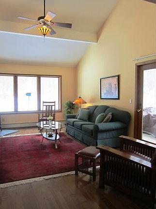 This custom stick built contemporary home offers plenty of privacy, yet close to both Ithaca and Cortland. The large foyer entrance leads into a bright living room with vaulted ceilings and woodstove. Kitchen features oak cabinets, newer appliances and leads to main level laundry/mud room and into attached garage. Dining room has doors to covered back deck, perfect for grilling, entertaining or peaceful bird watching. Master bedroom includes en-suite bathroom and double closets. Full partially finished basement with bar. Circular driveway and 2 acres. Adjacent to Yellow Barn State Forest!