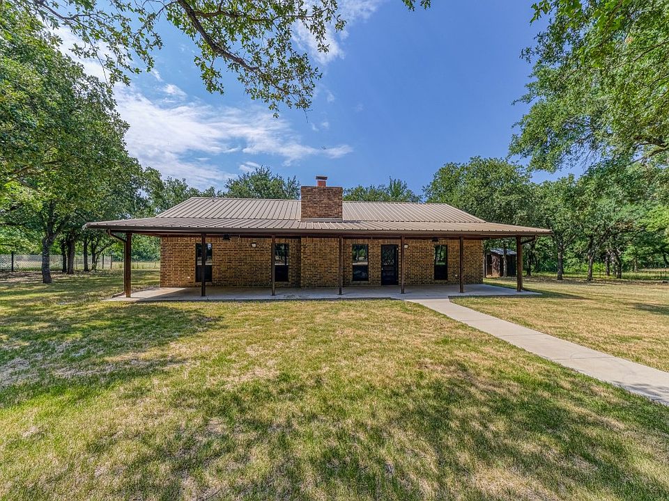 **Multiple offer situation, please submit highest and best by Tuesday, June 27th 5pm.*** Welcome to country living on 6 acres in Parker County. This BEAUTIFUL ranch style house surrounded by towering shade trees sits off the road with a gated entrance and circle driveway. Huge front porch to enjoy the serenity. The home features a metal roof, 3 large bedrooms, 2 full bathrooms, huge family room with brick fireplace, spacious utility room, brand new wood-look tile flooring throughout, new daylight bulbs to brighten every room, clean, and ready for new owners! Sprinkler system, exterior shed, nice divided fence in the back, and gate opening to the adjoining pasture for a total of 6 acres here in the wonderful Millsap ISD. This FANTASTIC property near the schools is a MUST-SEE! **Owner is selling the property “as is with no repairs “** ***Buyers will be responsible for a new survey if needed.****Measurements are approximates, buyers and agents to verify exact measurements*