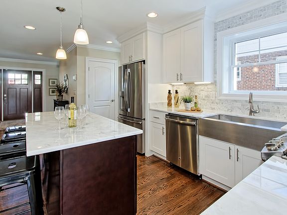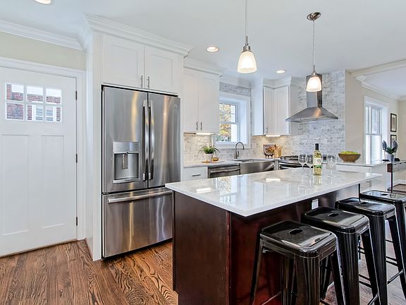Distinctive 4 BR, 5 bath home w/covered front porch, detached garage, & level fenced rear yard. Open floor plan - Kitchen w/shaker-style cabinetry, designer backsplash & center island opens to living rm & family rm. Luxurious MBR w/tray ceiling, sitting rm, 2 walk-in closets, en-suite bath w/granite vanity & dual rectangular sinks, jetted tub, & glass-enclosed shower. Rec rm w/wet bar & full bath.