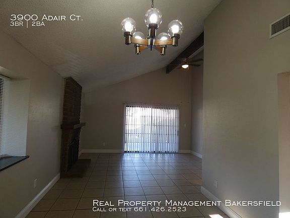 Lovely 3 bedroom, 2 bathroom home with plenty to offer! This property has tile throughout, a fireplace in the living room and plenty of storage space. Located near Donald E. Suburu Elementary, Tevis Junior High and Stockdale High School (interested party to verify). Schedule your appointment today! *Other terms, fees, and conditions may apply. Check the listing at rpmbakersfield.com for details. PET RULE: Pets allowed per owner approval of size and breed BREED RESTRICTIONS FOR EVERY PROPERTY: Check with manager for exceptions: Snakes over 3lbs, Ferrets, Exotic Animals, Birds, German Shepherd, Doberman, Chow, Rottweiler, Akita, American Staffordshire Terrier, Pit Bull, Presa Canario, Great Dane, Wolf Hybrid SMOKING: No Smoking Allowed in the Property LEASE LENGTH: 12 month minimum APPLICATION TURNAROUND TIME: Within 72 business hours ADDITIONAL FEES NOT INCLUDED IN RENT: * $40 Application Fee per applicant 18 or older, Non-Refundable * Deposit: 100% Refundable * $300 additional deposit per pet * Additional deposit is 100% Refundable * Pet Fee: $25 per month, per pet **BONUS AMENITY INCLUDED** A portion of total amount due will be used to have HVAC filters delivered to the home approximately every 90 days under the Utility & Maintenance Reduction Program to help you save 5-15% on your heating and cooling bill as well as create a clean healthy living environment. Applicant understands and agrees, if approved, in addition to rent the following fees will be assessed: One-time Documentation Fee: $99 This fee is for the preparation of the lease, corresponding documents, and for conducting both the move-in inspection and the move-out inspection and providing digital copies with pictures. Resident Benefits Fee: $10 per month This fee is for the enrollment and continued access to the Rental Rewards program, online portal access, and maintenance hotline. CalDRE#01993678 All information is deemed reliable but not guaranteed and is subject to change.