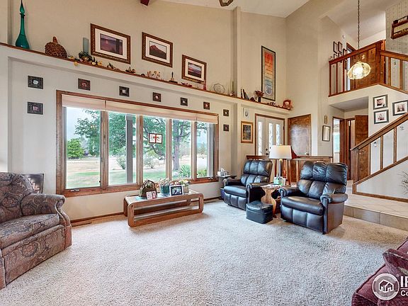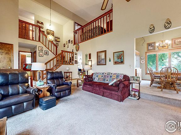 1 1/2 story home on 2.13 acres in a nice, quiet neighborhood west of Berthoud. Everything you need is on the main floor: bedroom, full bath, laundry, living room, kitchen, formal dining area and family room. The kitchen has lovely custom pecan cabinets and opens to the family room with access to the back yard on one side, and dining area on the other. A sunroom is just beyond the dining area. The unique floor plan has two stairway accesses to the basement. On the upper level are two bedrooms separated by a bath, and another room that has been used as a music room, but would also make a nice office area, overlooks the living room below. Large windows in the living room and sun room provide wonderful natural light. A large cinder block area below the sunroom was designed for passive solar on the south side of the house. The yard has a sprinkler system for the front and back lawn areas, and for the garden. A water pond with lilies highlights the back yard as well as a concrete patio, and of course the landscaping is mature. There is plenty of room for animals and outbuildings.- All appliances are included: washer, dryer, refrigerator, glass top range/oven and microwave. Pool table and wood stove are included as well. Original owners have loved this property and location for many years.