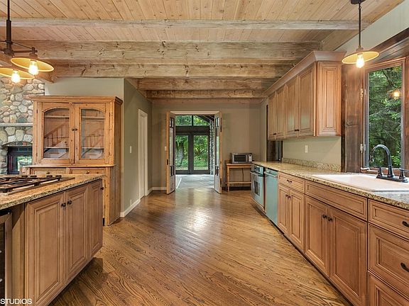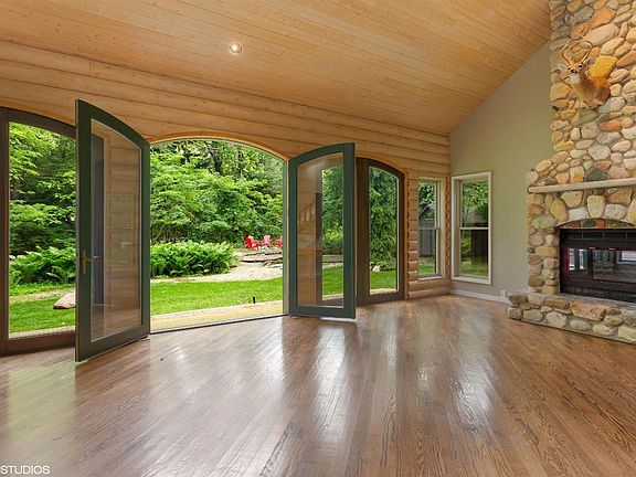 ENJOY FOR YOURSELF OR CREATE A PROFITABLE RENTAL OPPORTUNITY! Sophisticated and inviting, filled with charm and character, this 4 bedroom/3.5 bath, Michiana log home will sweep you away with the sense of zen living. Beautiful patios and soaring pine trees frame this special property. Chef's kitchen offers plenty of working space, granite counters, expanded island, custom cabinets and an eat in breakfast area. Rustic beams & hardwood floors complement the floor to ceiling fieldstone fireplace. Vaulted ceilings are enhanced by cedar & skylights. Arched custom doors provide the backdrop for picturesque beauty and outdoor entertainment. Short walk to MICHIGAN DEED BEACHES and indoor hot tub to enjoy year round. Low IN taxes make this a perfect investment opportunity. Consistent rental history for 10 summer weeks, fall ND Football weekends and getaways/holidays. Creek is located on north end of property, making home in flood plain. Buyer requires due diligence regarding flood insurance.