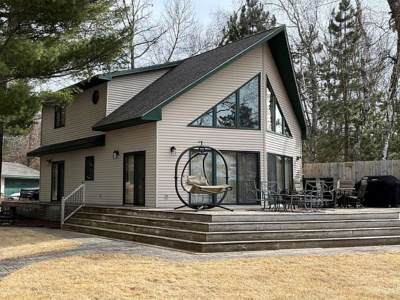Easily one of the very best lots on the entire Gull Lake chain, this west facing, one of kind property features 216' feet of hard sand lake bottom, panoramic views, level elevation, along with a well appointed 3-bedroom home that has 2-full bathrooms, vaulted ceilings, central vac with 3-sweeps, updated kitchen with new appliances, a wet bar, pantry and beautiful views. You will also enjoy a large wrap around deck that covers 3-sides of the house with the west side being quite large. The garage is a 3-car garage with shop and a half bath. There is also a shed to store lawn equipment and the lot extends across the road so that you can park a pontoon, boat or travel trailer when not in use. The dock is also new and made by DH Dock. The house can be sold as almost turnkey with only a few items being excluded from the sale.