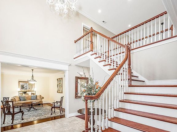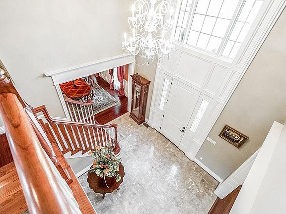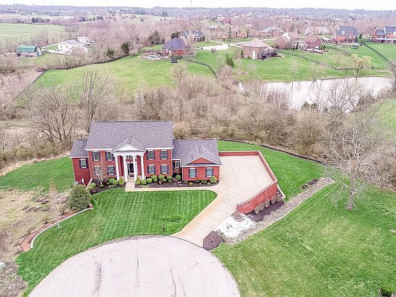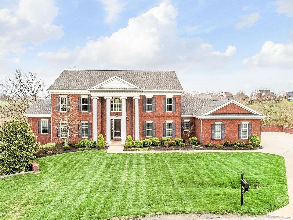 Beautiful, colonial-style walkout on 3.214 ACRES in the desirable Clarke Pointe Estates neighborhood of Crestwood, KY! Nestled on the end of a cul-de-sac with an abundance of trees, you'll find both privacy & a peaceful place of retreat. A grand 2 story entry with marble floors welcomes you into this home with a layout perfect for both entertaining & family life! Just off the entry you'll find both the formal dining room & living room, both with beautiful hardwood flooring. The spacious great room features soaring 2 story ceilings, a fireplace flanked by built-in bookcases & hardwood floors that flow into the eat-in kitchen with granite countertops, stainless appliances, tile backsplash with accent feature above the range & a spacious breakfast area overlooking the beautiful acreage.