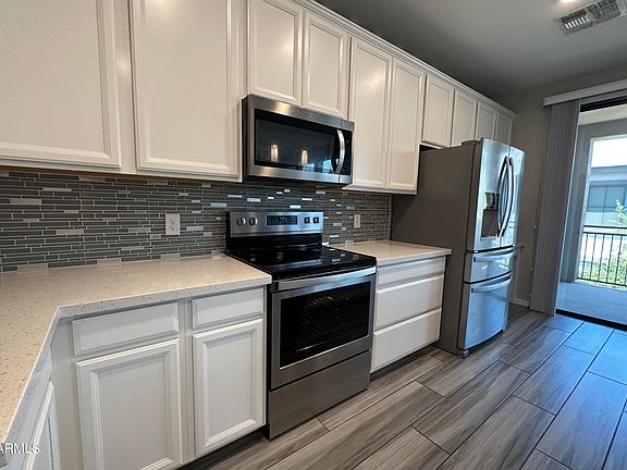 2 bedroom, 2 bathroom, modern condo. Kitchen has extra long white cabinetry, gorgeous glass tiled backsplash and elegant quartz countertops. Stainless Steel appliances are included. The master bath is equipped with a dual vanity, linen cabinet, an over-sized tiled shower with honeycomb glass tiles. The enormous walk-in closet is a fashionista's dream. Private 2 car garage. It has everything you need for the perfect 'on the go' lifestyle. Gated community features a resort style pool with a bathroom, BBQ, Ramada, Fire Place and a grassy dog park. Close to the I-10, ASU. Extremely close to the Raven Golf Course, Legacy Golf Course, and Arizona Grand Golf Course.