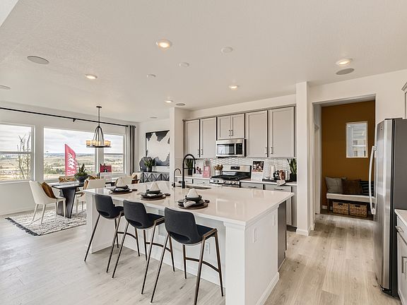 Contemporary family-inspired design makes the Ridgway a standout. The kitchen overlooks the everyday dining space and features an eat-in island and expansive walk-in pantry. A convenient flex space at the front of the home provides the perfect place for a study, kid's playroom, or multi-purpose room! Airy volume ceilings in the great room invite time with loved ones and entertaining. The second story offers a private primary suite, a loft and two additional bedrooms. A two-car garage, large laundry room and options for up to 6 bedrooms are perfect for growing households.