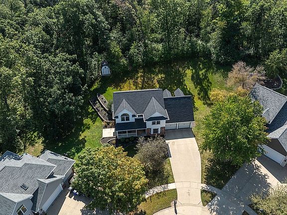 We welcome buyer's agents. Discover the perfect blend of tranquility, modern updates, and bonus features in this four-bedroom, four-bath home, ideally situated at the end of a peaceful cul-de-sac. The sellers have updated nearly every aspect of this home, including a new roof, siding, HVAC system, water heater, fresh paint, and new flooring throughout. The upper floor includes the master bedroom with a vaulted ceiling and attached bathroom. Down the hall, there is a large bathroom and three more bedrooms. The main floor features a dedicated office space, a dining room with custom built-ins, an updated kitchen, and a cozy living room with a gas fireplace and large windows overlooking the wooded backyard. The finished basement includes new carpet with two bonus rooms, a bathroom, a living room with a gas fireplace, a storage room, and a walk-out basement. The backyard includes a large deck, a fire pit area, and a new 8'x12' shed.