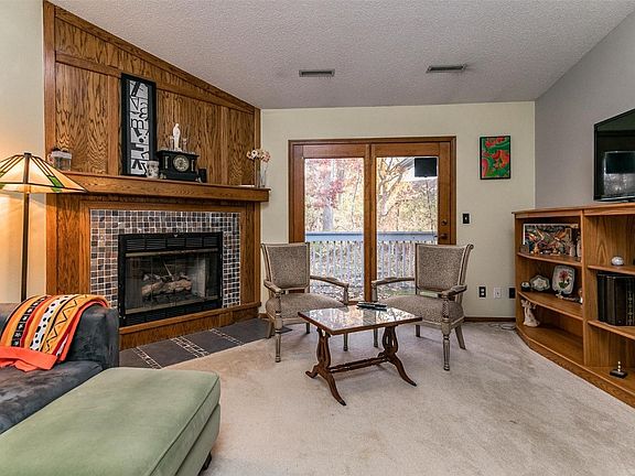 This spacious condo has had many updates in the past few years. It has been painted throughout. New hard surface kitchen counters, new refrigerator, and refaced cabinets. Many of the light fixtures have been updated and replaced. One bedroom has all new carpet, just installed. The en suite bathroom off the primary bedroom has been reconfigured and has new fixtures, refaced cabinets, new flooring, and paint. The deck, which as access from the kitchen AND from the living room, offers great views of the wooded area behind the complex and the vaulted ceiling living room has large windows to offer the same views during the cold winter months by the gas fireplace. This unit has a secure main entrance and off street guest parking.