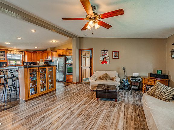 Check out this spacious well-maintained 4 bedroom & 2 bath manufactured home in north Bismarck. This home has a completely open concept. The kitchen is very spacious featuring beautiful cabinetry with lots of pull outs, nice accents and a large island. There are 2 living rooms & a cozy fireplace in the one. The master bedroom includes a large shower, walk-in closet and lots of storage space. The other bedrooms are bright & very spacious. The laundry room is huge & features an adorable bench seat to make it the perfect mud room.