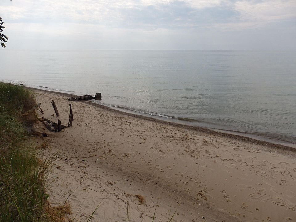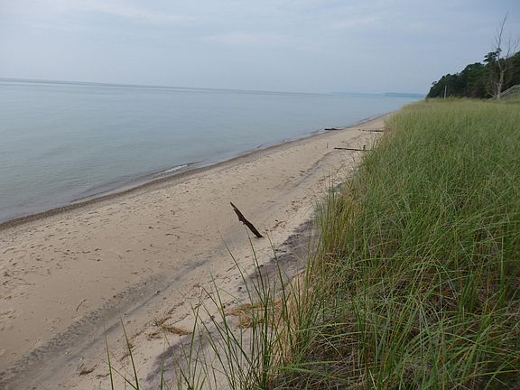 Prime Lake Michigan frontage just north of Manistee, 100 feet of lower bluff frontage, nice sandy beach, gradual slope to the lake, nicely wooded lot with 0.6 acres. The property is accessed on a shared driveway with the neighbors to the south and north. DEQ requires a 60 foot setback from the top of the bluff line for home construction.