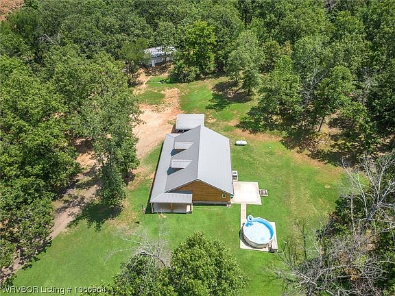 Secluded Country Charmer just waiting for your family. Offering 40 acres 3 bed and 2 1/2 bath log-siding home built in 2015, featuring a 30X40 shop and above-ground pool. It has a picturesque setting nestled in the woods overlooking a beautiful expansive pond. This home offers so many features with an open floor plan, vaulted ceilings and wrap around porch. You have a 1/2 mile of private drive to your secluded paradise. This property ticks all the boxes for your family to make a lifetime of memories. Constructed with 2X6 walls and extra insulation for great efficiency and affordability. A finished loft that could be easily converted to a playroom or additional room. The Attic has ample space that could be converted into additional upstairs living or storage. Two car carport at the east end of the home. Features 40 acres of wooded land for hunting enthusiasts and a large pond for fishing. Abundance of nature and wildlife including large bucks just steps from your back door. The 18' round pool was installed in 2020 and sits on a concrete pad for easy maintenance. The 1200 SF shop is wired with electricity and has 220 AMP availability. If you have been wanting country living and privacy this is the home for you and your family. This home is just 15 miles from Fort Smith and 17 miles from Poteau. Offers Wave Rural Connect Fiber Optic Internet Service for the person that works from home. Great access to all your needs while getting to maintain your privacy. Call me or your realtor to schedule a private showing today!!!